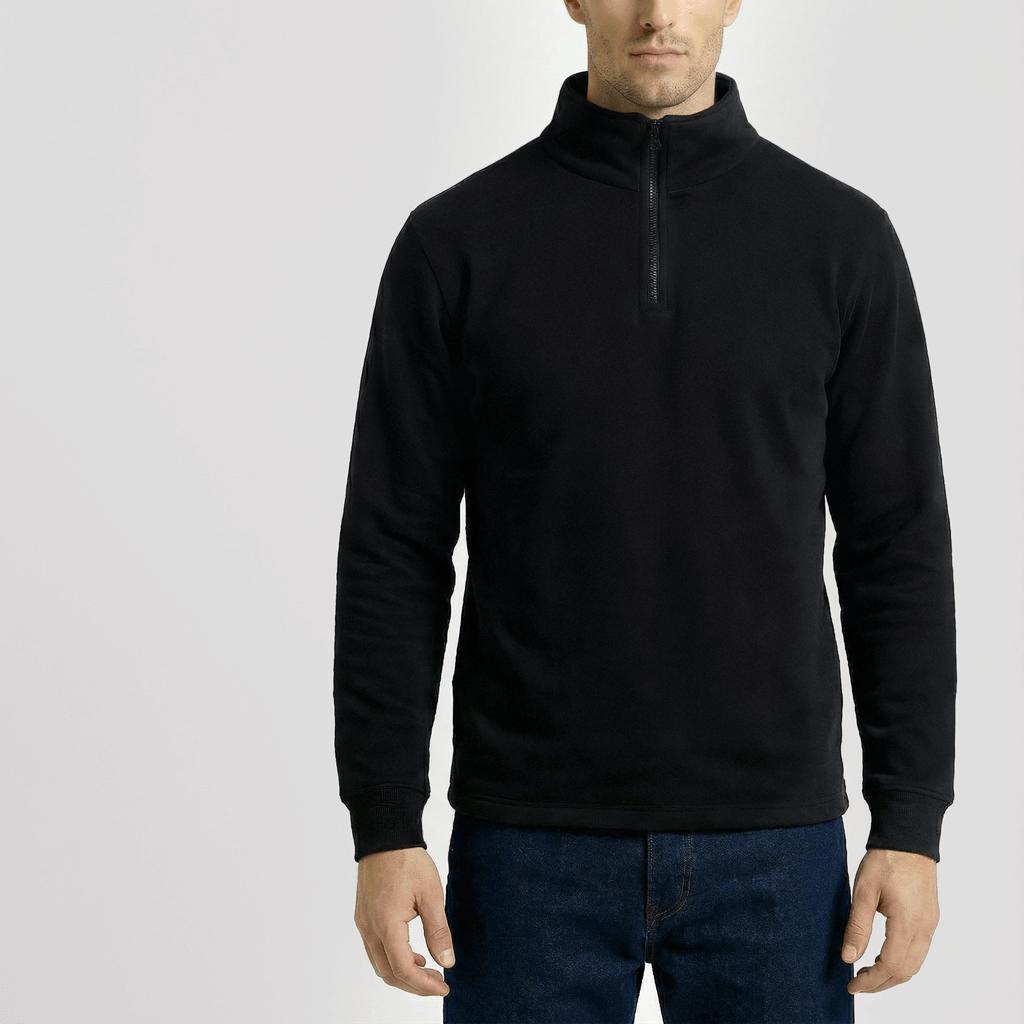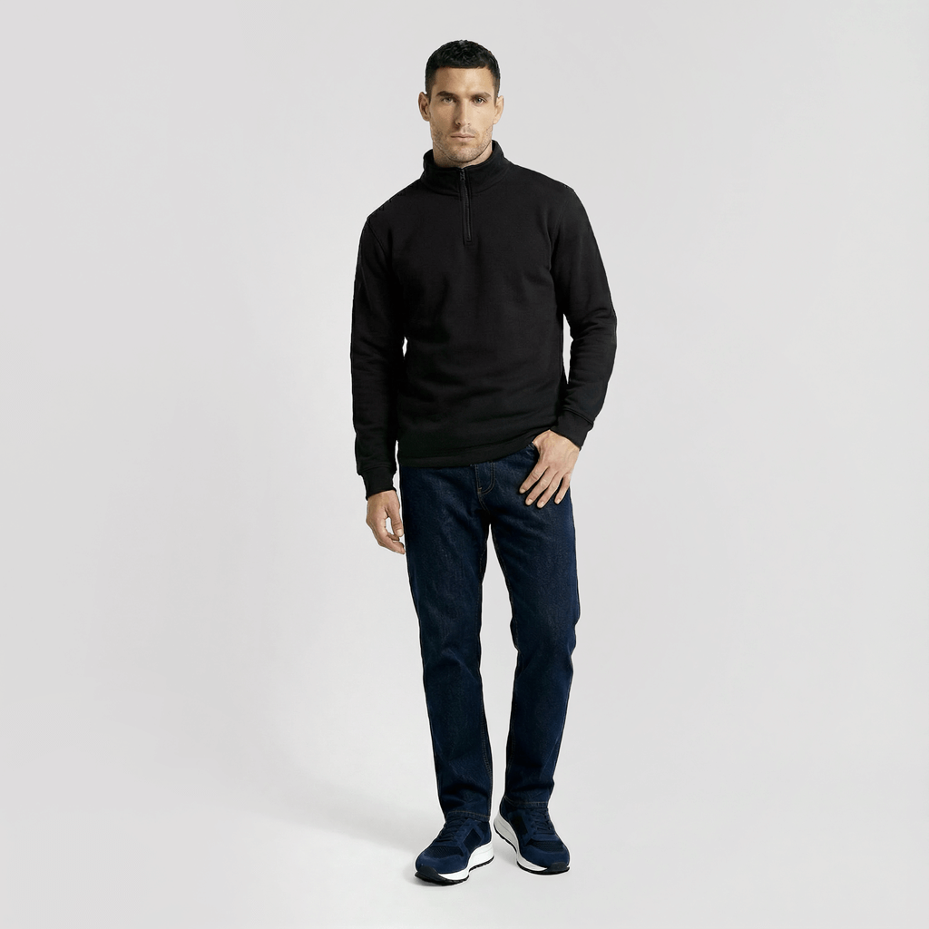 Stylischer Stehkragen-Pullover mit Frontreißverschluss im Casual Style. Dieser Frontöffner ist aus hochwertiger Baumwolle und mit gesticktem Logo im Rückenbereich. Unser Material befindet sich auch unter dem Reißverschluss im Halsbereich. Unsere Ärmel sind bei unseren Produkten um ca. 10% länger.